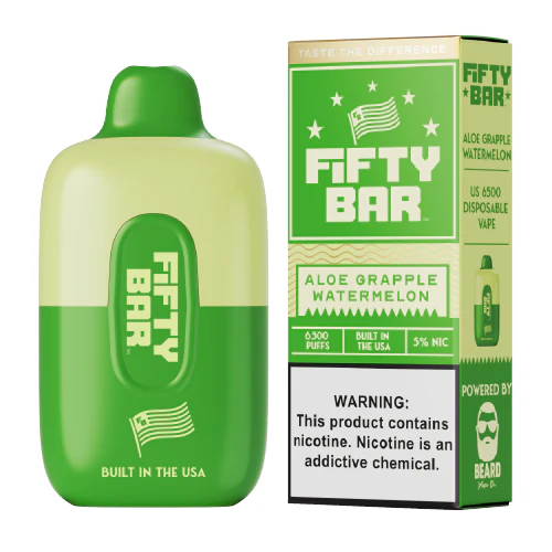 Dive into a crisp and invigorating vaping experience with the Aloe Grapple Watermelon vape by Fifty Bar. This disposable vape has captured the hearts of flavor enthusiasts with its unique blend of aloe, grape-apple (grapple), and watermelon, offering a refreshing journey with every puff. Whether you’re an experienced vaper or a newcomer, you’ll find this flavorful trio an exciting addition to your vaping repertoire.